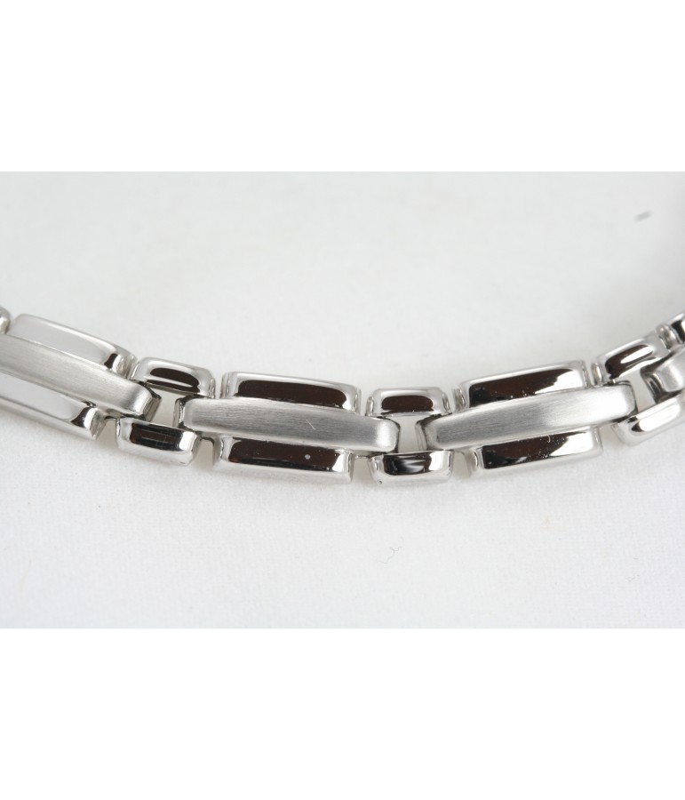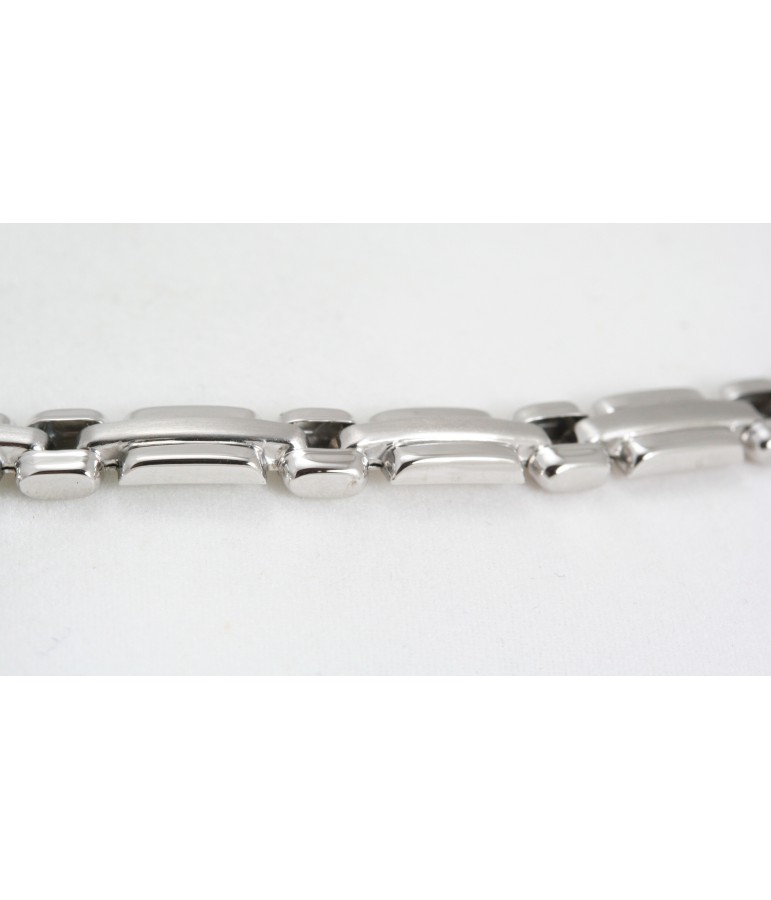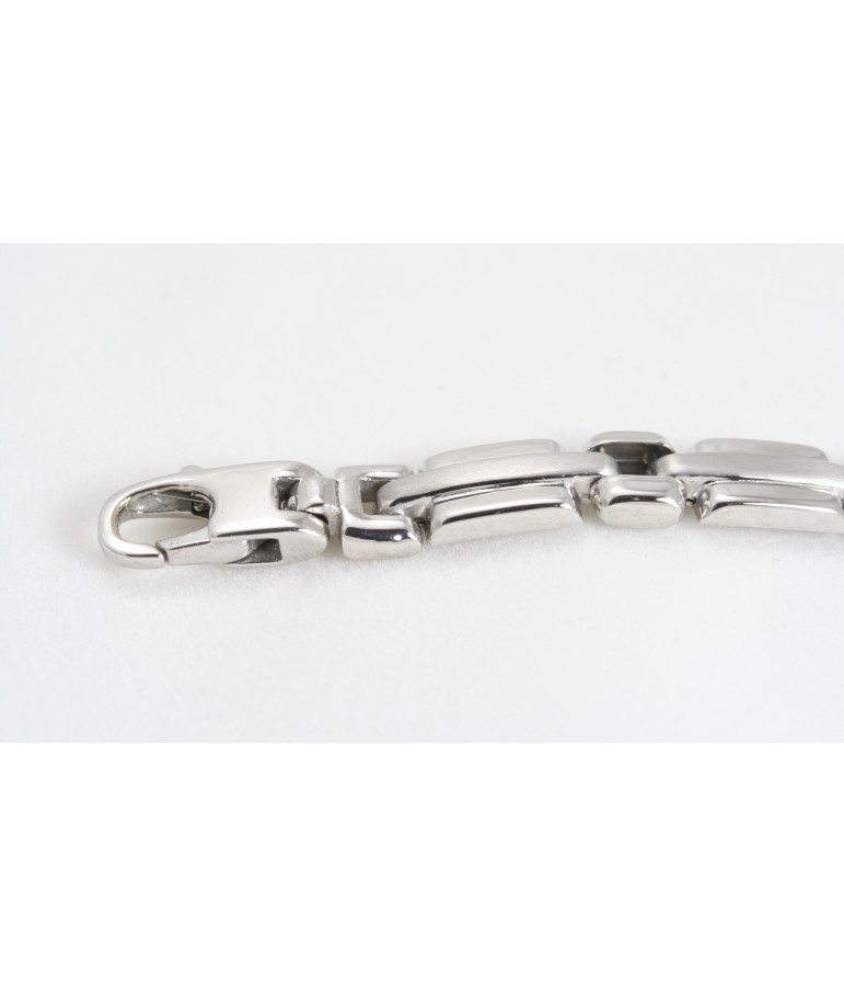 Bracciale da uomo Oro Bianco Men realizzato in Oro Bianco Rodiato 18 Kt - 750°%. Maglia semirigida con lavorazione lucida e satinata. Chiusura con moschettone. Lunghezza: 20.5 cm. Peso: 11 Gr. Nuovo con scatola e certificato. Al momento dell'acquisto emettiamo scontrino fiscale o fattura.